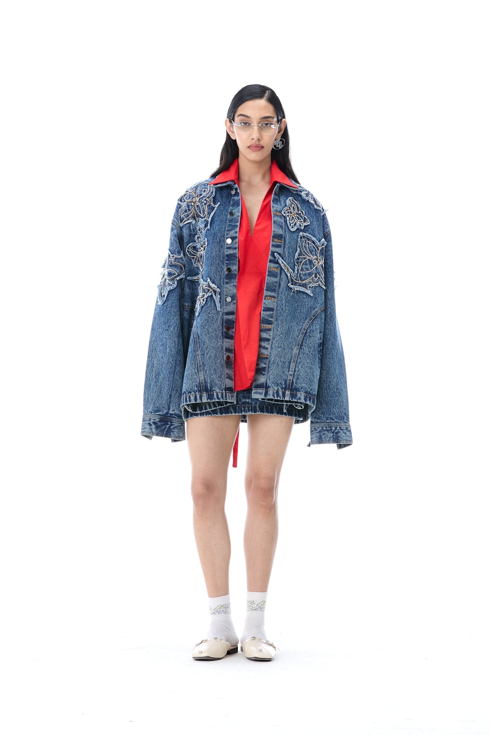 Embroidered oversized denim jacket