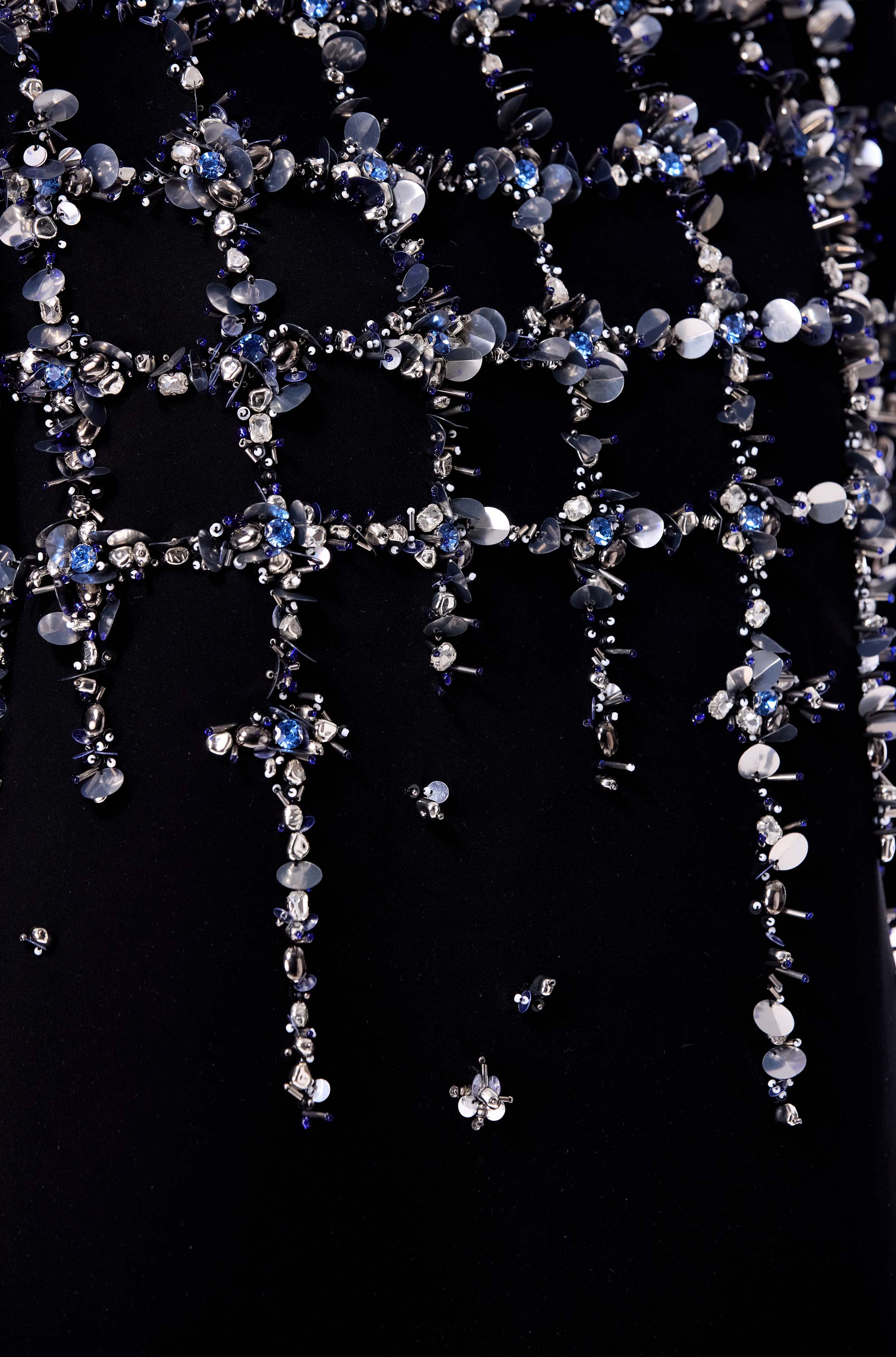 BLEU FRAY EMBELLISHED DRESS