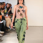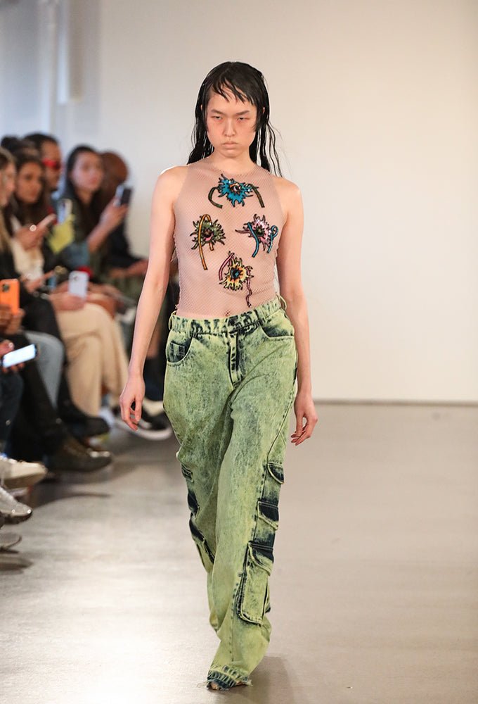 Green wash denims with multi-pocket detailing